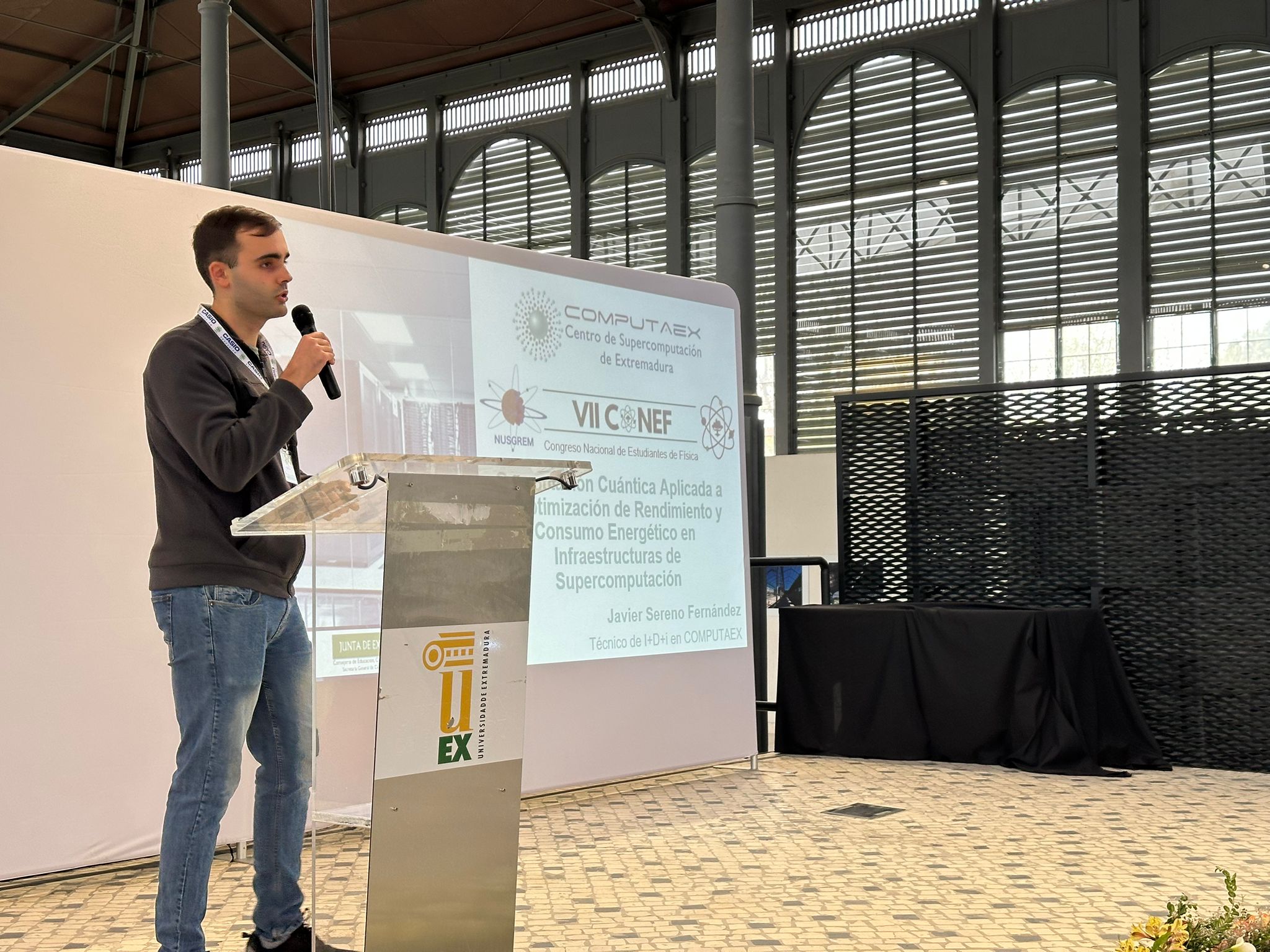 D. Javier Sereno, graduado en Física, desarrolla su labor investigadora en el proyecto regional QCO4HPC, orientado a aplicar técnicas de computación cuántica para optimizar el rendimiento y el consumo energético en infraestructuras de supercomputación, y que está cofinanciado por la Consejería de Educación, Ciencia y Formación Profesional de la Junta de Extremadura.