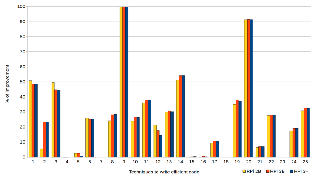 De esta manera, los programadores de Raspberry Pi y otros ordenadores de placa reducida (SBC, Single Board Computer) basados en ARM deben ser conscientes del importante impacto que pueden tener pequeñas y simples porciones de código en el tiempo de ejecución de sus aplicaciones (lo que también puede conducir a una mayor eficiencia energética), siendo aconsejable que apliquen las técnicas recomendadas, especialmente cuando sus programas se desarrollan para ser ejecutados continuamente.