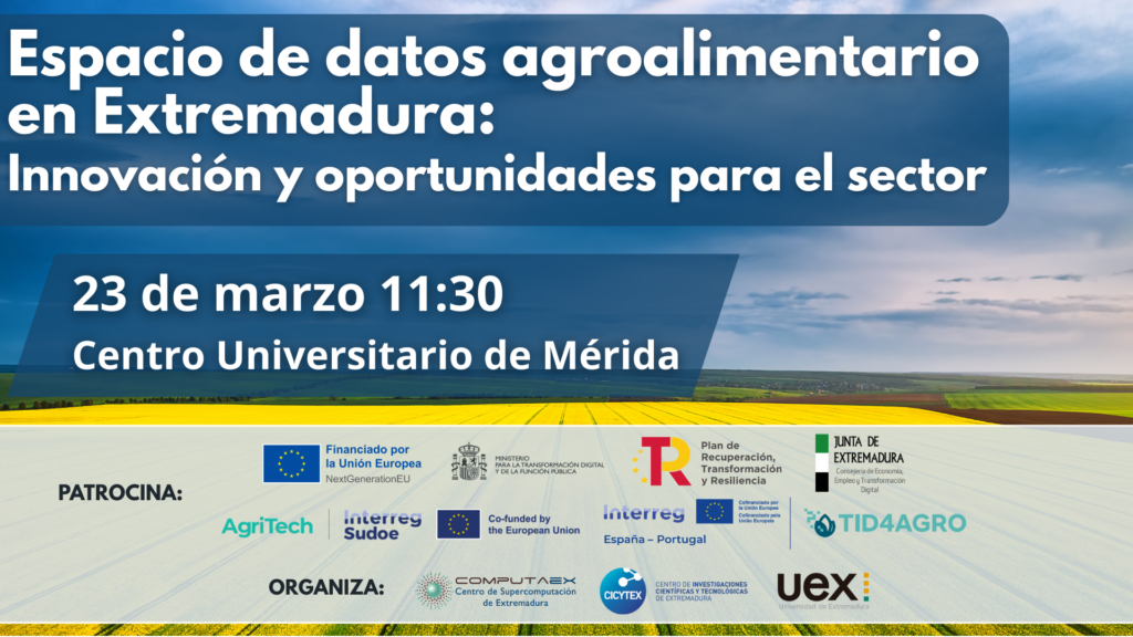 COMPUTAEX organiza en Mérida, junto a CICYTEX y la UEX, las jornadas «Espacio de datos agroalimentario en Extremadura: Innovación y oportunidades para el sector»